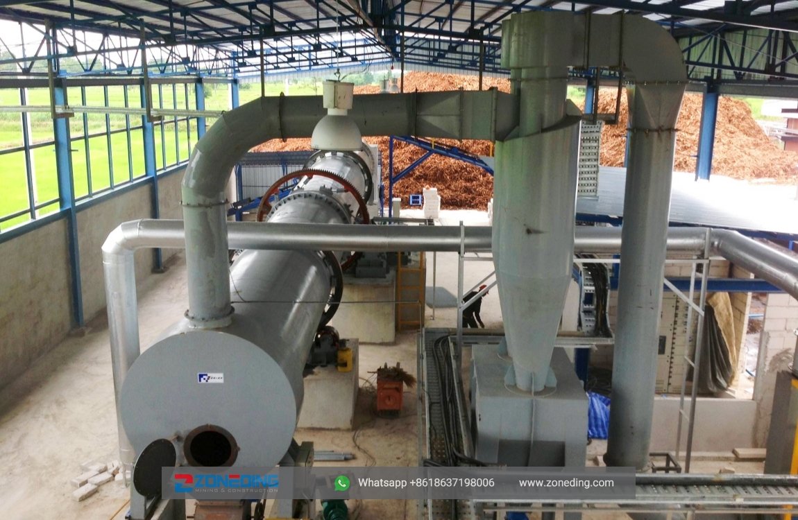 1. The sawdust is fully dried in the rotating cylinder;